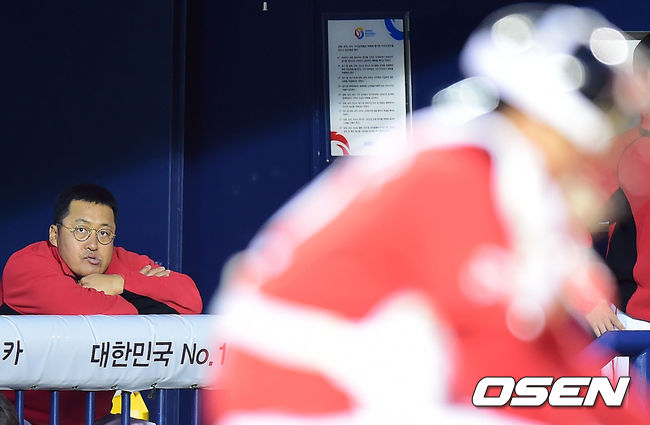 8일 오후 서울 잠실야구장에서 열린 '2014 한국야쿠르트 세븐 프로야구' 두산 베어스와 SK 와이번스의 경기, SK 조인성이 벤치에 앉아 경기를 관전하고 있다.