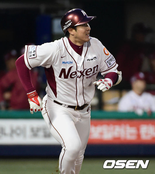2회말 1사 2,3루에서 넥센 유한준이 중견수 뒤를 넘어가는 2타점 적시타를 치고 그라운드를 달리고 있다.