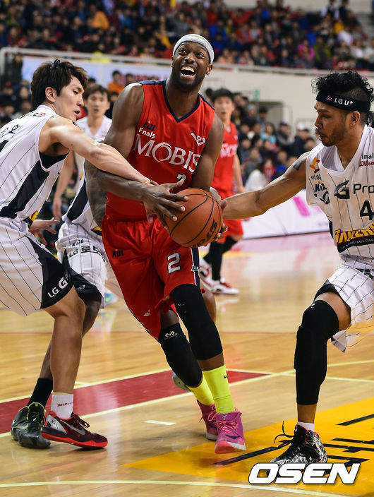 8일 오후 울산시 울산동천체육관서 진행된 'KB 국민카드 2013-2014 프로농구' 울산 모비스와 창원 LG의 경기, 2쿼터 모비스 벤슨이 골밑슛을 위해 드리블하고 있다.
