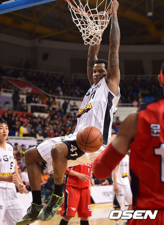 8일 오후 울산시 울산동천체육관서 진행된 'KB 국민카드 2013-2014 프로농구' 울산 모비스와 창원 LG의 경기, 4쿼터 LG 제퍼슨이 덩크슛을 성공시키고 있다.