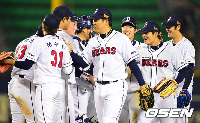 승리를 거둔 두산 선수들이 기뻐하고 있다./youngrae@osen.co.kr