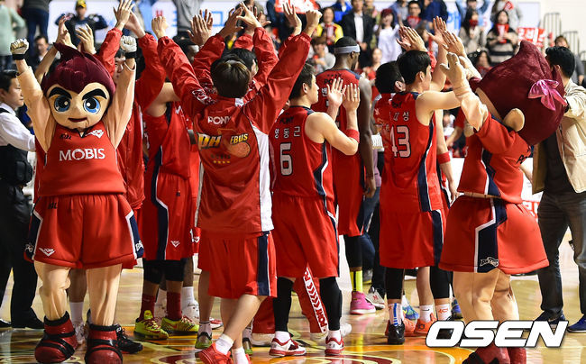 경기종료 후 모비스 선수들이 승리의 기쁨을 나누고 있다. / soul1014@osen.co.kr
