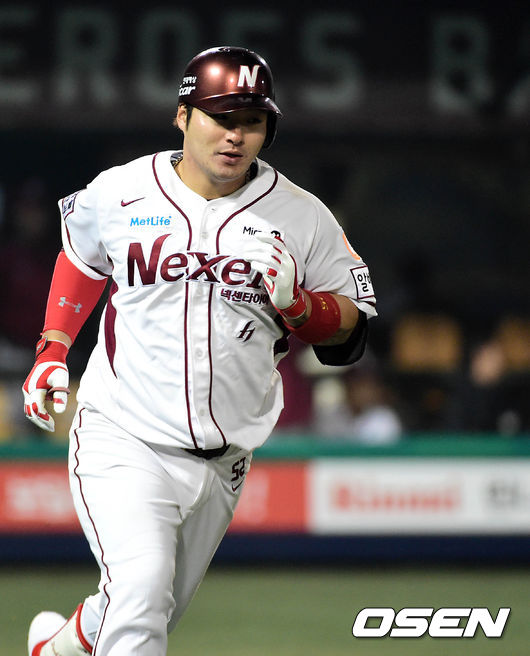 7회말 1사에서 넥센 박병호가 좌월 솔로 홈런을 치고 그라운드를 돌고 있다.