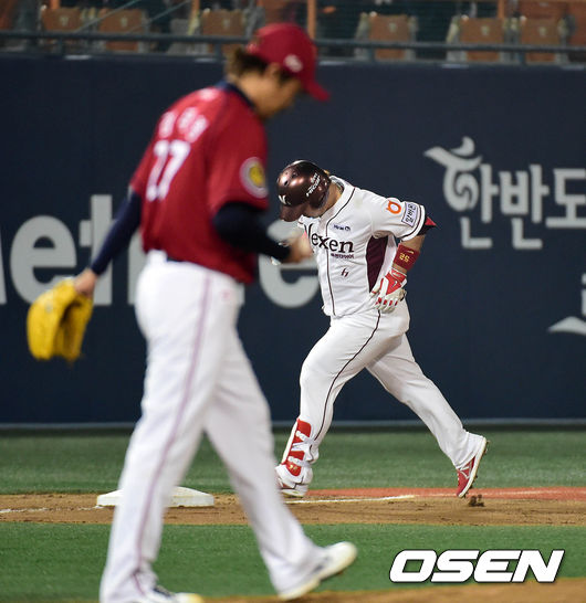 7회말 1사에서 넥센 박병호가 좌월 솔로 홈런을 치고 그라운드를 돌고 있다.