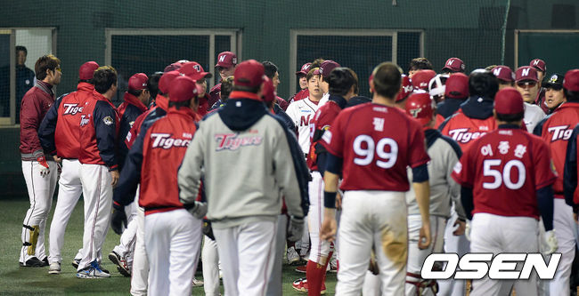 9회초 2사에서 넥센 손승락의 투구에 맞은 KIA 김주찬이 흥분하자 벤치클리어링이 벌어졌다.