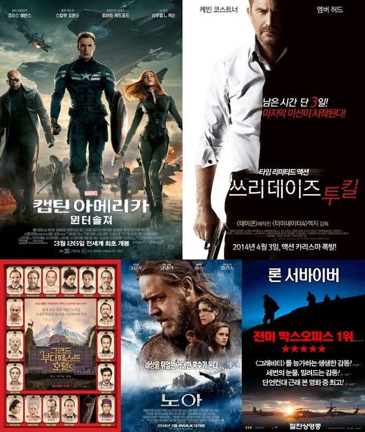 1위는 '캡틴 아메리카:윈터 솔져'로 이날 5만 7671명을 모아 누적관객수 273만 8572명을 기록했다. 2위는'쓰리데이즈 투 킬'로 1만 2831명을 동원해 17만 2670명을 나타냈다.