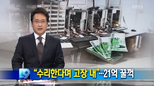 이런 수법으로 1만 300명으로부터 총 21억 3800만 원을 요구한 이 컴퓨터 수리 업체는 고의로 부품을 망가뜨린 후 부품비를 청구해 월 1300만 원을 챙겨내는 등 고객들의 돈을 '꿀꺽'해온 것으로 알려졌다.