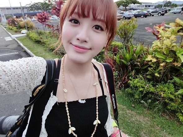 걸그룹 레인보우 멤버 김재경이 여행 중 사진을 한 장 찍으며 꽃다운 미소를 지었다.