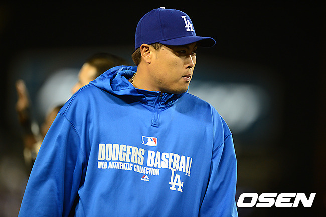 경기후 다저스 류현진이 크로포드와 승리를 기뻐하고 더그아웃으로 향하고 있다./ jpnews@osen.co.kr
