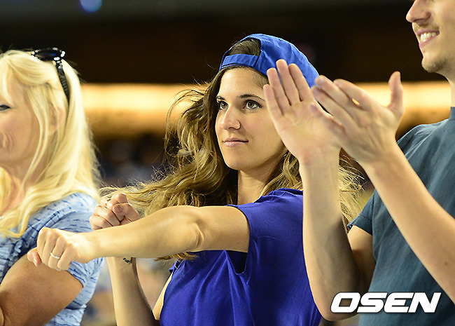 9회말 다저스 여성 팬이 열띤 응원을 하고 있다./ jpnews@osen.co.kr
