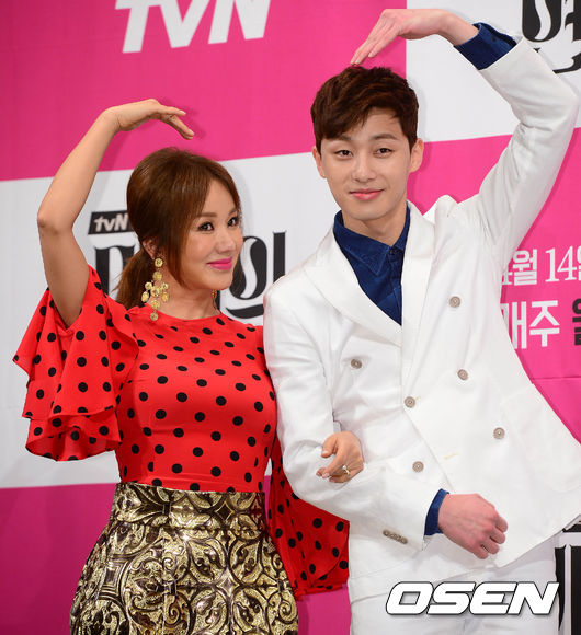 9일 오후 서울 논현동 임피리얼 팰리스 서울에서 열린 tvN 월화드라마 '마녀의 연애' 제작발표회에서 엄정화, 박서준이 포토타임을 갖고 있다.