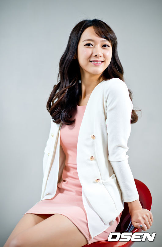 롤챔스의 새로운 여신, 온게임넷의 얼굴 권이슬(25) 아나운서가 오센과의 인터뷰를 갖고 포즈를 취하고 있다.