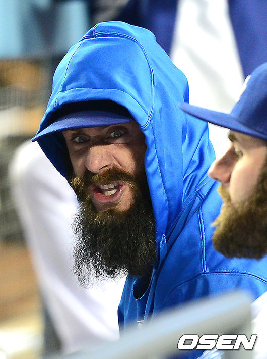 다저스 윌슨이 더그아웃에서 동료선수와 이야기를 나누고 있다./ jpnews@osen.co.kr
