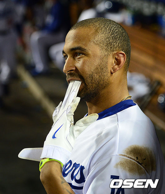 8회말 다저스 맷 켐프가 장갑을 벗고 있다./ jpnews@osen.co.kr