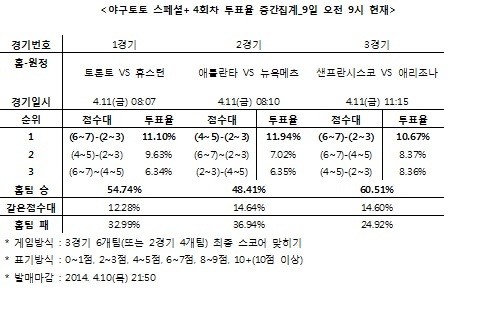 미국프로야구(MLB) 3경기 대상 야구토토 스페셜+ 4회차 투표율 중간집계
