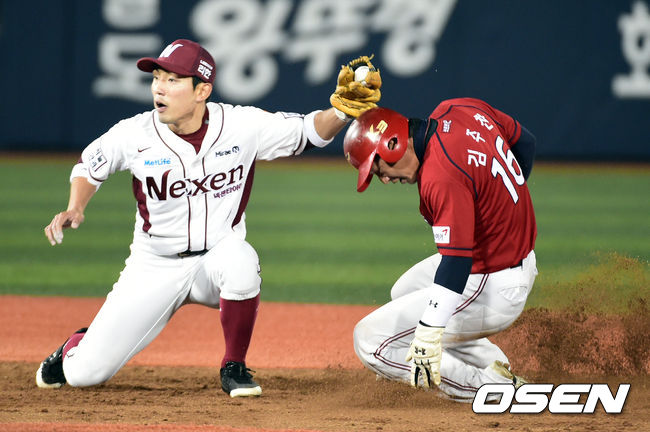 9일 목동 야구장에서 벌어진 2014 한국프로야구 넥센 히어로즈와 KIA 타이거즈의 경기3회초 무사 1,3루 김주찬이 2루 도루에 성공하고 있다.
