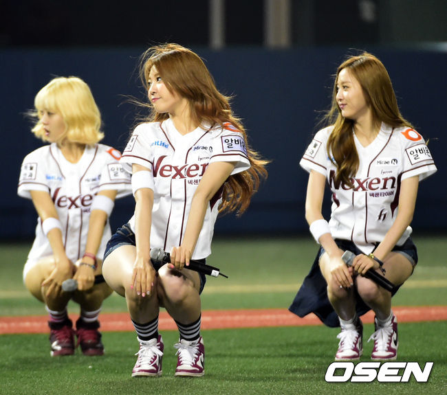 9일 목동 야구장에서 벌어진 2014 한국프로야구 넥센 히어로즈와 KIA 타이거즈의 경기 크리닝 타임때 베스티가 축하공연을 하고 있다.