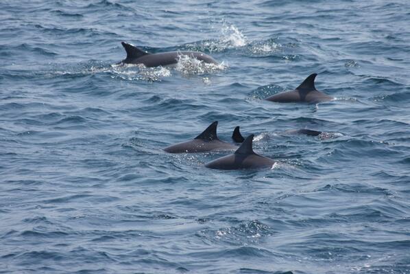 울산시는 9일 공식 트위터에 "울산 고래바다여행선 올해 첫 고래 떼 발견"이라는 제목으로 한 장의 사진을 게재했다. 공개된 사진 속에는 바다 속에서 힘차게 유영하고 있는 참돌고래떼의 모습이 담겨 있다.