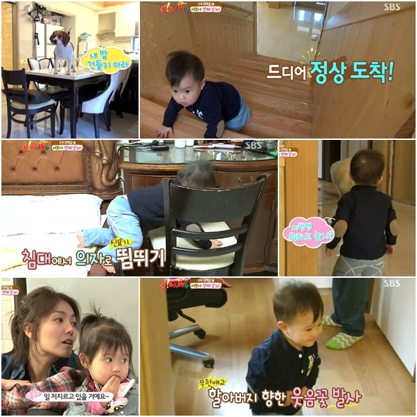 짧은 시간에도 이 어린 아이는 동에 번쩍 서에 번쩍 집안을 활보했다. 김태오는 내려오지 못하는 계단을 기어 올라가고, 침대에서 의자로 뜀뛰기를 하는 등 한시도 가만히 있지를 못했다. 전화기는 장난감 삼아 가지고 놀았고, 책상 위의 컵은 엎질러 머리부터 물을 뒤집어 썼다. ‘슈퍼베이비’ 김태오가 시야에서 없어지면 엄마 류승주는 “일 저지르고 있을 것”이라며 걱정을 했다.