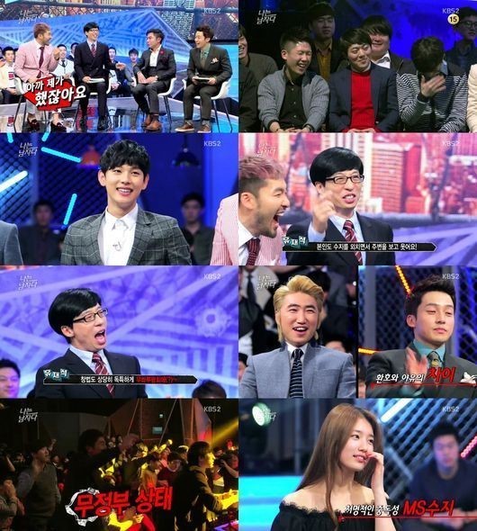이날 '나는 남자다'는 국민 MC 유재석을 필두로 250명의 남자 방청객들과 함께 남자들이 공감할 만한 내용으로 토크를 나눴다. 특히 그룹 미쓰에이의 수지가 등장하자 군대를 방불케 하는 높은 함성을 보여 눈길을 끌었다.