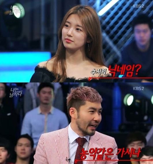 지난 9일 방송된 '나는 남자다'에서 MC 노홍철은 깜짝 출연한 수지에게 "국민 첫사랑, 농약같은 가시나 등 다양한 닉네임이 있는 무슨 애칭이 가장 좋냐"고 물었다.