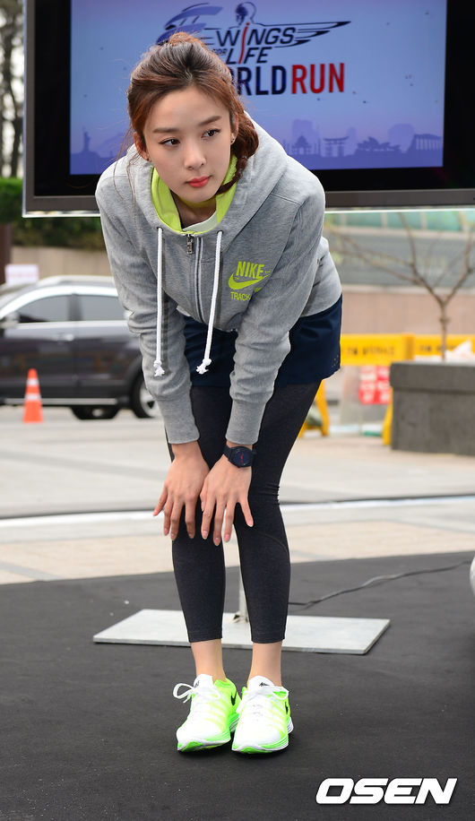 이청아가 행사에 앞서 스트레칭을 하고 있다.