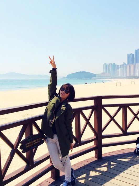 도희는 지난 9일 오후 자신의 트위터를 통해 "안녕 해운대!"라는 짧은 글과 함께 사진 한 장을 게재했다.