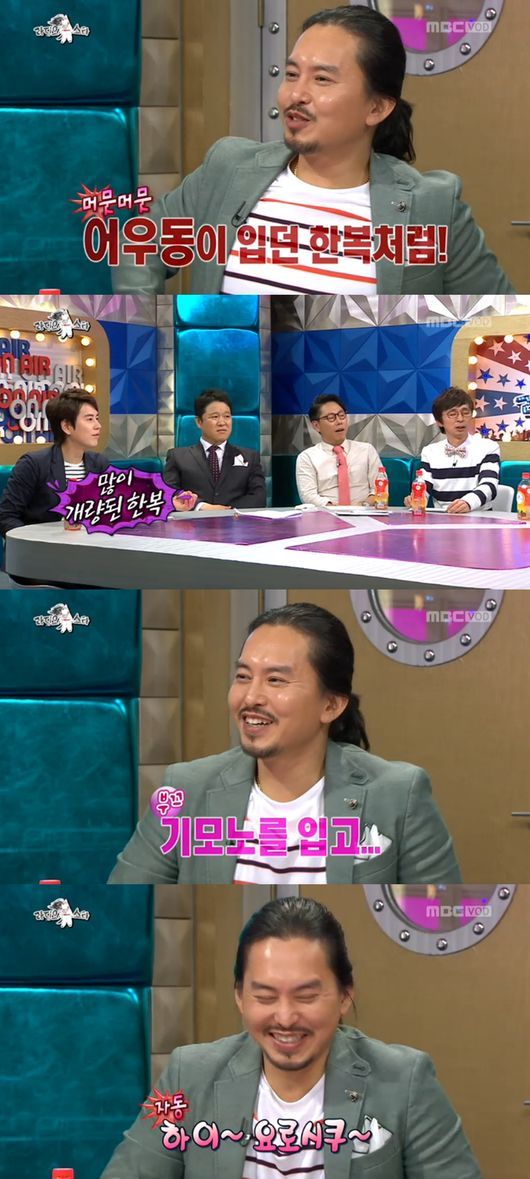 MC 윤종신이 “한복을 입으면 명절 때 입는 한복이냐”고 질문하자 윤기원은 “어우동이 입던 한복을 입어다”며 “또 예전에 일본으로 여행을 갔는데 그때는 기모노를 입고 일본어를 말하는 설정을 했다”고 말해 웃음을 자아냈다.