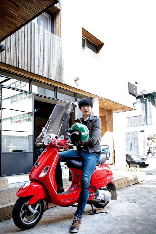스쿠터에 앉아있는 배우 유민규의 모습이 공개됐다.
