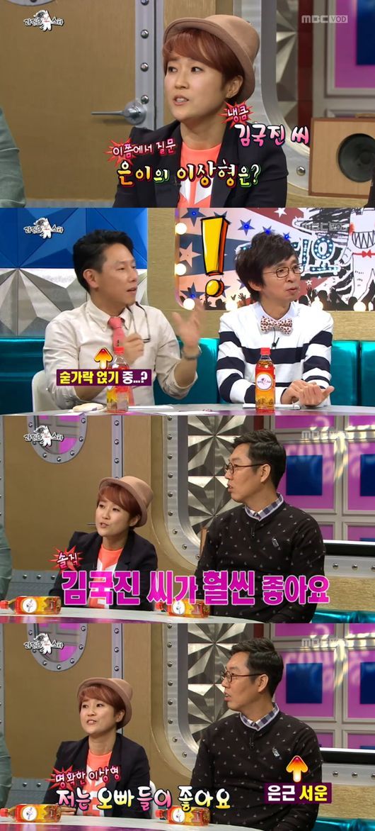 MC 김구라가 “김국진보다는 김영철이 낫지 않냐”는 반응을 보이자 송은이는 “김국진 씨가 훨씬 좋다”며 “나는 오빠들이 좋다”고 말했다.