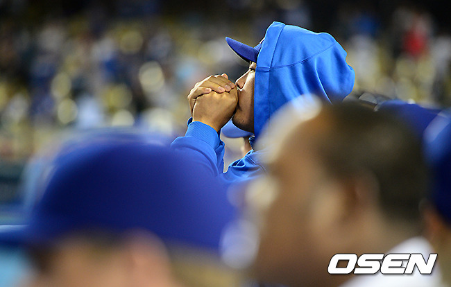 10회말 다저스 류현진이 더그아웃에서 경기를 지켜보고 있다. / jpnews@osen.co.kr