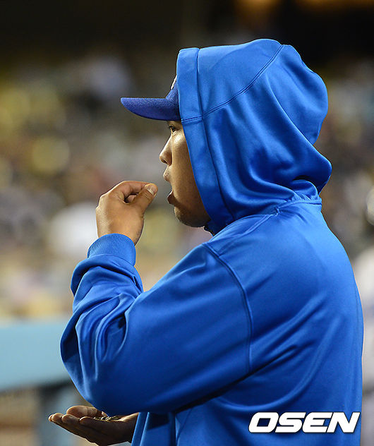 다저스 류현진이 해바라기씨를 먹으며 경기를 지켜보고 있다. / jpnews@osen.co.kr