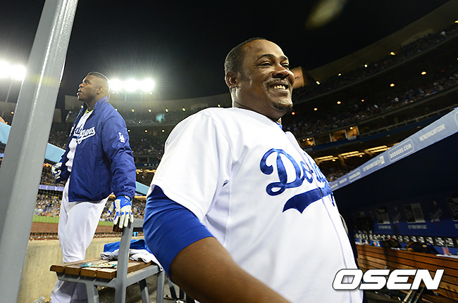 다저스 유리베가 푸이그와 이야기를 나누며 수비 준비를 하고 있다. / jpnews@osen.co.kr