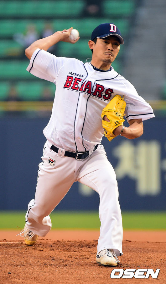10일 오후 서울 잠실야구장에서 열린 '2014 한국야쿠르트 세븐 프로야구' 두산 베어스와 SK 와이번스의 경기, 1회초 두산 노경은이 역투하고 있다.