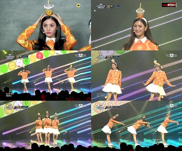 오렌지캬라멜은 10일 오후 방송된 케이블채널 엠넷 '엠카운트다운'에 출연해 '까탈레나' 무대를 꾸몄다.