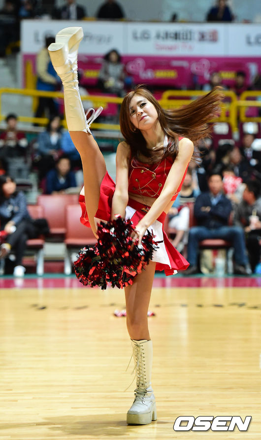 경기에 앞서 치어리더 김연정이 화려한 공연을 펼치고 있다.