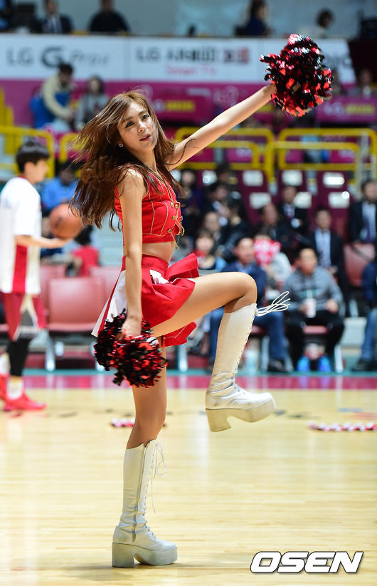 경기에 앞서 치어리더 김연정이 화려한 공연을 펼치고 있다.