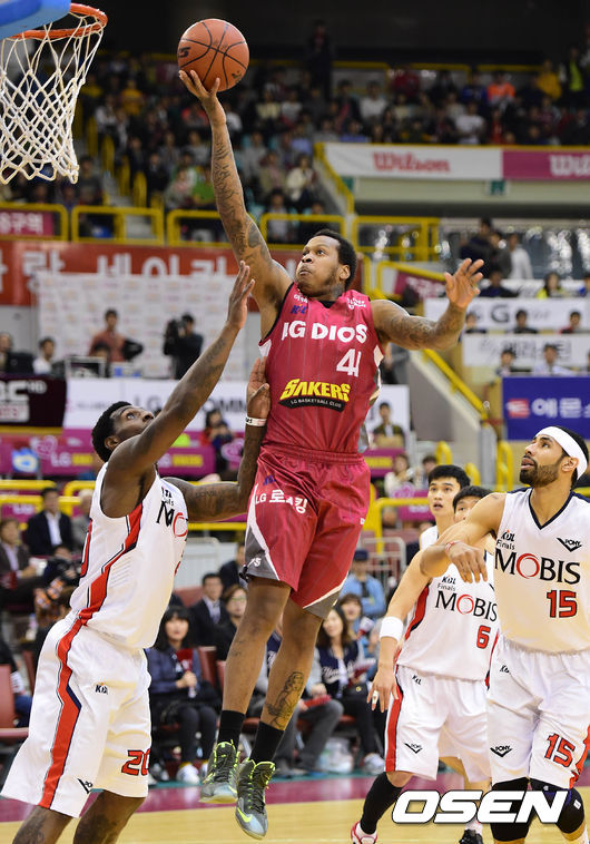 1쿼터 LG 제퍼슨이 레이업 슛을 시도하고 있다.