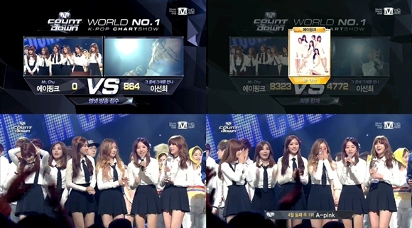 걸그룹 에이핑크가 '엠카운트다운' 컴백과 동시에 1위를 차지했다.
