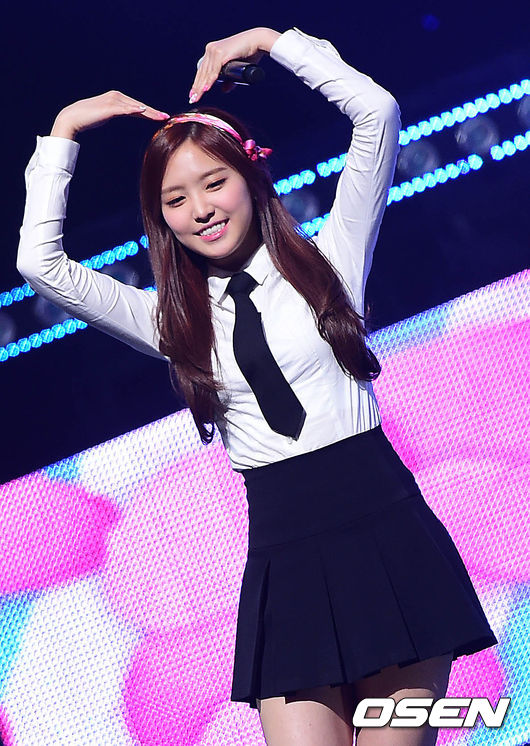 걸그룹 에이핑크 손나은이 10일 오후 서울 상암동 CJ E&M에서 진행된 Mnet '엠카운트다운'(이하 엠카) 생방송에서 1위를 차지한 뒤 팬들에게 인사하고 있다.
