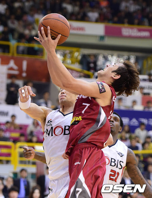 2쿼터 LG 김영환이 레이업슛을 시도하고 있다.