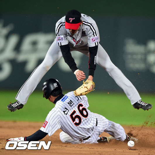 10일 오후 부산 사직구장에서 열린 '2014 한국야쿠르트 세븐 프로야구' 롯데 자이언츠와 LG 트윈스의 경기,5회말 2사 1루 롯데 이상화의 타석때 1루 주자 신본기가 도루성공하고 있다.