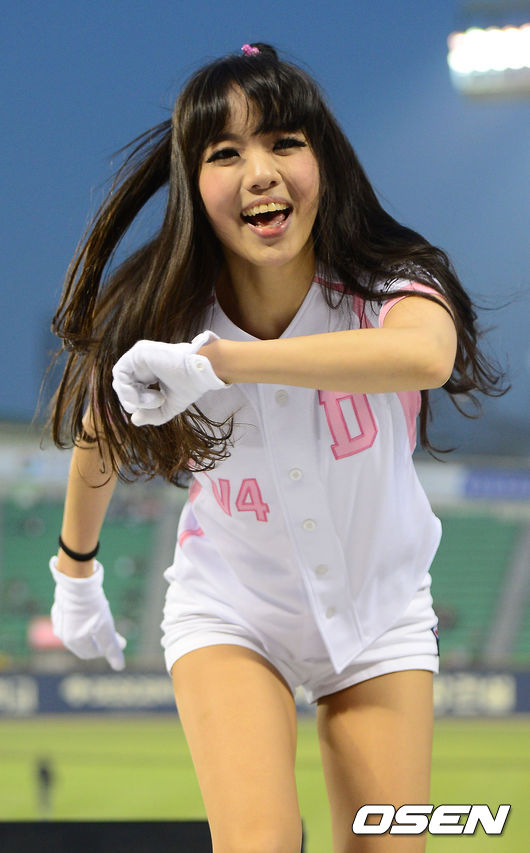 10일 오후 서울 잠실야구장에서 열린 '2014 한국야쿠르트 세븐 프로야구' 두산 베어스와 SK 와이번스의 경기, 두산 치어리더가 멋진 공연을 선보이고 있다.