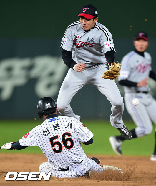 10일 오후 부산 사직구장에서 열린 '2014 한국야쿠르트 세븐 프로야구' 롯데 자이언츠와 LG 트윈스의 경기,5회말 2사 1루 롯데 이상화의 타석때 1루 주자 신본기가 도루성공하고 있다.