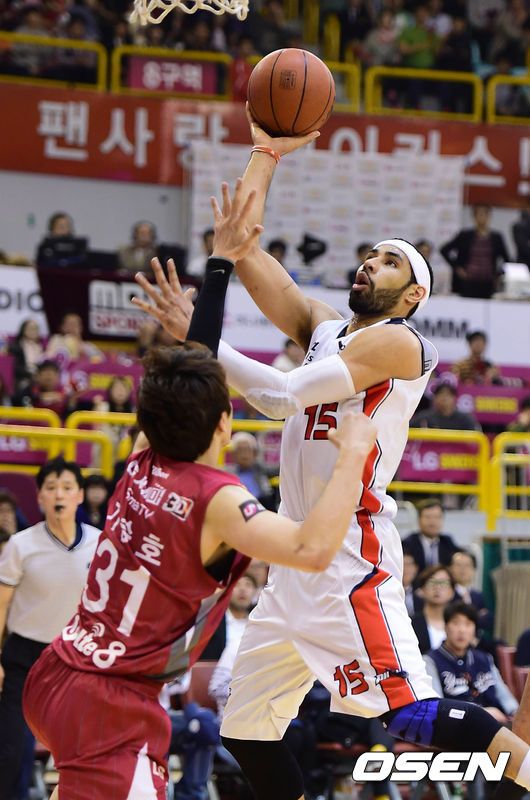 3쿼터 모비스 문태영이 점프슛을 시도하고 있다.