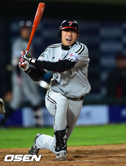 10일 오후 부산 사직구장에서 열린 '2014 한국야쿠르트 세븐 프로야구' 롯데 자이언츠와 LG 트윈스의 경기,8회초 1사 1,2루 LG 김용의가 헛스윙 삼진을 당하고 있다.