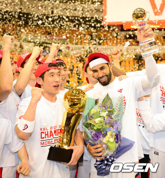 MVP를 수상한 모비스 문태영이 환호하고 있다./sunday@osen.co.kr