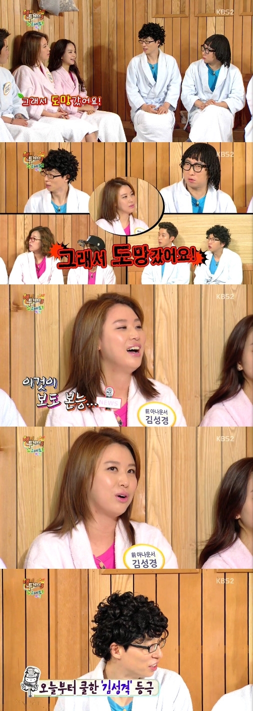 그러나 김성경은 “그래서 도망갔어요”라고 대답, 지난해 여름 연애 사실을 밝혔지만 헤어졌다고 깜짝 고백했다.