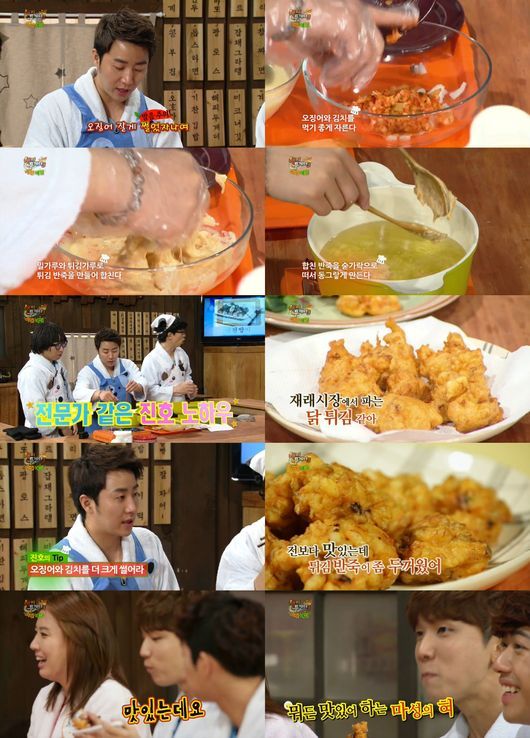 홍진호는 지난 10일 방송된 KBS 2TV ‘해피투게더3’ 야간매점에서 오징어 김치 튀김, 일명 콩징어를 선보였다.