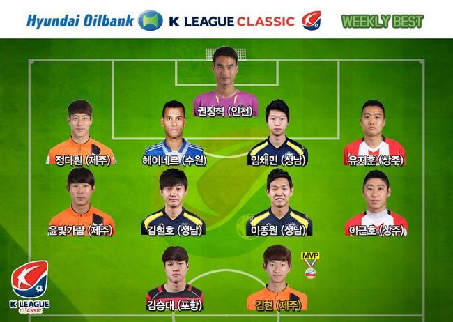 공격수 부문에는 김현을 비롯해 경남FC전서 2골을 몰아치며 3-0 완승을 이끈 김승대(포항, 5경기 연속 무패의 상승세를 이끈 화끈한 멀티골)가 선정됐다.